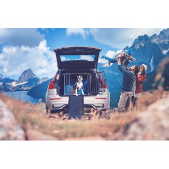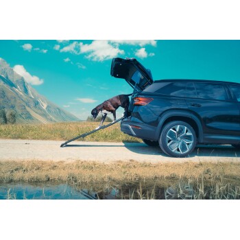 EasySteps - das Original aus der Schweiz, besitzt eine High-Tech Anti Rutsch Lauffläche, mit garantierter Trittsicherheit bei jeder Witterung. Die EasySteps Hunderampe wiegt nur 5,4 kg und ist garantiert bis 100 kg belastbar. Die 3-fach Teleskop Konstruktion ist mit nur einer Hand bedienbar. So können Sie auch auf vielbefahrenen Strassen mit einer Hand immer Ihren Hund kontrollieren. Easy-Steps ist sehr platzsparend und kann problemlos auch in Kombination mit einer Hundebox im Kofferraum verstaut werden. Stufenlos verstellbar von 69- 160 cm. Das einzigartige Gleit-Brems-Kontrollsystem schützt Ihre Hände vor Verletzungen und verhindert das ungebremste Ausfahren der Rampe. Gummifüße an beiden Enden der Rampe schützen die Stoßstange vor Kratzern und geben einen sicheren Halt auf jedem Untergrund.