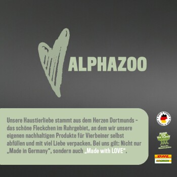 Auf Dem Sprung 60g Der perfekte Snack für aktive HundeDu möchtest deinen Hund in seiner Bewegungsfreude unterstützen und dabei lecker belohnen? Auf Dem Sprung ist genau das Richtige für deinen agilen Vierbeiner. Mit herzförmigen Häppchen sorgt dieser Funktionssnack für Genussmomente, die du und dein Hund lieben werden – egal ob beim Training oder als Belohnung zwischendurch.Warum dieser Snack ideal für deinen Hund istDie durchdachte Rezeptur mit Zutaten wie Leinsamen, Glucosamin und Kollagen macht diesen Snack besonders. Die kleinen Herzen (ca. 4 g) sind leicht portionierbar und eignen sich für Hunde jeder Größe. Hergestellt ohne künstliche Aromen oder Farbstoffe – nur ehrliche Qualität für deinen Liebling.Vorteile auf einen Blick:Hochwertige Zutaten: Mit Erdnussbutter, Kokosöl und wertvollen Nährstoffen.Niedliche Herzform: Einfach zu portionieren und super praktisch.Manufakturqualität: Direkt aus dem Ruhrgebiet mit Liebe und Sorgfalt hergestellt.Warum ALPHAZOO?ALPHAZOO steht für faire Preise, natürliche Zutaten und regionale Herstellung. Unsere Snacks werden mit größter Sorgfalt und aus hochwertigen Rohstoffen produziert, um deinem Hund das Beste zu bieten.