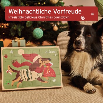 Adventskalender für Hunde 2025 100 % Natur - Jeden Tag eine schmackhafte Belohnung Schenke Deinem Hund jeden Tag eine kleine Freude in der Vorweihnachtszeit mit AniForte® Adventskalender für Hunde . Hinter jedem Türchen des liebevoll gestalteten Adventskalenders verbirgt sich eine köstliche Nascherei, die die weihnachtliche Vorfreude Deines Hundes versüßt und gleichzeitig sein Wohlbefinden unterstützen kann. AniForte® Adventskalender für Hunde ist mehr als einfach nur ein Kalender – es ist ein tägliches kleines Fest für Deinen Hund. Jede Überraschung wurde sorgfältig ausgewählt, um die Verbindung zwischen Dir und Deinem treuen Begleiter zu stärken und die gemeinsamen Momente wertvoller zu machen. Mach auch anderen eine Freude – der Kalender ist ein hübsches Geschenk für Hundebesitzer in der Adventszeit! Was erwartet Dich in unserem Hunde Adventskalender 2025? AniForte® Dog Snacks in alle Sorten: Obst & Gemüse, Rind, Pferd, Huhn und Insekten Rein natürliche, schmackhafte Leckerlis in kleinen Portionen – ideal zum Ausprobieren unserer Hundesnacks. AniForte® Magen & Darm Snack – für ein wohliges Hunde-Bauchgefühl! Besonders lecker mit zartem Hähnchen und leicht bekömmlich. Der Snack enthält wichtige probiotischen Bakterien zur Unterstützung der Darmflora, hochwertiges Naturmoor, Flohsamenschalen und eine magenharmonische Kräutermischung aus Fenchel, Melisse, Echte Kamille, Kümmel und Süßholzwurzel. AniForte® Relax Snack – in der Ruhe liegt die Kraft! Viel zartes Hähnchenfleisch kombiniert mit unserer hochwertigen und natürlichen AniForte® Calm & Relax – Kräutermischung aus Baldrianwurzel, Hopfenblätter, Melisse und Passionsblumenkraut. Neu hinzu kommen Kamille und Grüntee-Extrakt für noch mehr Gelassenheit und Entspannung. AniForte® Kokos Sticks – der exotische Snack, der immer gut ankommt 100 % Kokosnuss: Lecker, nahrhaft und voller Eiweiß, Mineral- und Ballaststoffe – knuspriger Kauspaß mit einem Hauch von Karibik Der Adventskalender als umfangreiches Probierpaket Testet Euch 24 Tage lang durch unsere schmackhaften Hundesnacks. Alles für Deinen Liebling, um ihn jeden Tag aufs Neue zu überraschen und zu verwöhnen – schonend gebackene Funktionssnacks und schmackhafte Knusperhappen. Mache die Adventszeit zu einem unvergesslichen Erlebnis für Deinen vierbeinigen Freund und zeige ihm, wie wichtig er für Dich ist, mit dem AniForte® Adventskalender . Bringe auch Deine Vierbeiner in Weihnachtsstimmung mit unserem limitierten Adventskalender für Hunde! Unser AniForte® – Versprechen Für uns steht das Wohl Deines Tieres an erster Stelle, daher werden unsere AniForte® Produkte mit viel Hingabe und nur mit den besten Zutaten hergestellt. Um den hohen Qualitätsstandart unserer Produkte zu halten, arbeiten wir stetig mit einem Team von Tierärzten, Ernährungsberatern und Tierheilpraktikern daran. Dabei lassen wir uns von der Natur inspirieren! Maße des Adventskalenders: 325 x 230 x 35 cm (inkl. praktischem Aufhänger auf der Rückseite)