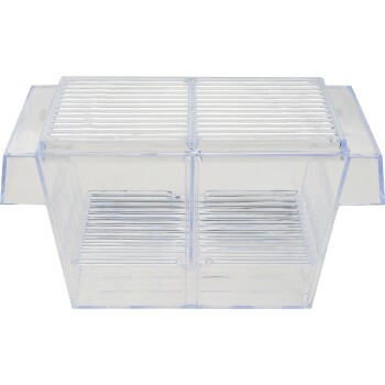 Er ist schwimmend und kann überall im Aquarium mit Saugnäpfen fixiert werden. Leicht zu montieren. 3 Funktionen: 1. Einsatz zum Ablaichen für max. zwei kleinere weibliche Tiere, z. B. Guppy-/Platyweibchen 2. Einsatz zum Ablaichen für ein weibliches Tier, z. B.: Schwertträger 3. Aufzucht der Jungtiere ohne Elterntiere und zur Isolation und Pflege von geschwächten Tieren. Kapazität 1,2 L Maße: ca. 20 x 10 x 10cm Material: Polystyrol