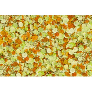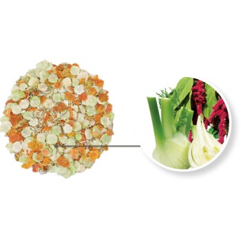 Wellness Flakes von BLUE TREE sind eine hochwertige, getreidefreie Mischung aus Gemüseflocken, die sich optimal als Nahrungsergänzung bei der Fütterung mit Dosennahrung oder rohem Fleisch (BARF) eignet. Wellness Flakes sind komplett frei von Aroma-, Farb- und Konservierungsstoffen. Die Grundlage unserer Wellness Flakes besteht aus protein- und vitaminreichen Erbsen-, Karotten- und Kartoffelflocken. Unsere Sorte Wellness Flakes Garten-Gemüse wird mit leichter Zucchini, Kürbis und Petersilie verfeinert und so sorgt dieser fett- und kalorienarme Mix für leichte und schmackhafte Abwechslung auf dem Speiseplan unserer Vierbeiner. Dieser Mix sättigt sehr gut, ist leicht verdaulich und unsere Lieblinge werden gleichzeitig mit vielen wertvollen Vitaminen (A, B6, C, E und K), Folsäure, Eisen und vielen weiteren Spurenelementen und Mineralien sowie mit Ballaststoffen versorgt. Diese Nährstoffe wirken sich positiv auf die Gesunderhaltung unserer Hunde aus und unterstützen: - bei der Blutbildung - bei der Entzündungshemmung - bei der Bildung des Immunsystems - beim Aufbau von Knochenzellen - bei zu hohen Cholesterinwerten - bei Magen- und Darmbeschwerden - bei der Entgiftung - bei Harnwegsinfekten (harntreibend) - bei Maul- und Körpergeruch