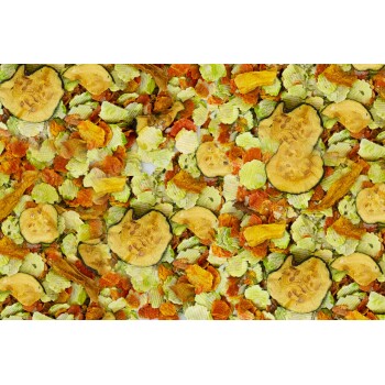 Wellness Flakes von BLUE TREE sind eine hochwertige, getreidefreie Mischung aus Gemüseflocken, die sich optimal als Nahrungsergänzung bei der Fütterung mit Dosennahrung oder rohem Fleisch (BARF) eignet. Wellness Flakes sind komplett frei von Aroma-, Farb- und Konservierungsstoffen. Die Grundlage unserer Wellness Flakes besteht aus protein- und vitaminreichen Erbsen-, Karotten- und Kartoffelflocken. Unsere Sorte Wellness Flakes Garten-Gemüse wird mit leichter Zucchini, Kürbis und Petersilie verfeinert und so sorgt dieser fett- und kalorienarme Mix für leichte und schmackhafte Abwechslung auf dem Speiseplan unserer Vierbeiner. Dieser Mix sättigt sehr gut, ist leicht verdaulich und unsere Lieblinge werden gleichzeitig mit vielen wertvollen Vitaminen (A, B6, C, E und K), Folsäure, Eisen und vielen weiteren Spurenelementen und Mineralien sowie mit Ballaststoffen versorgt. Diese Nährstoffe wirken sich positiv auf die Gesunderhaltung unserer Hunde aus und unterstützen: - bei der Blutbildung - bei der Entzündungshemmung - bei der Bildung des Immunsystems - beim Aufbau von Knochenzellen - bei zu hohen Cholesterinwerten - bei Magen- und Darmbeschwerden - bei der Entgiftung - bei Harnwegsinfekten (harntreibend) - bei Maul- und Körpergeruch
