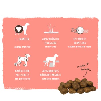 Bosch ACTIVE hat einen hohen Anteil an frischem Geflügel (min. 25 %) als hochwertige tierische Eiweißquelle und wird ohne Weizen hergestellt. Durch den Einsatz eines Immun-Komplexes aus Mannanen und Glucanen wird die Darmflora stabilisiert sowie das Immunsystem gestärkt. Knorpel und Gelenke werden durch die enthaltenen Muschelextrakte unterstützt. Die Vorteile im Überblick: mit viel frischem Geflügel (min. 25 %) Muschelextrakte für Knorpel und Gelenke mit Mannanen und Glucanen zur Stabilisierung der Darmflora und Immunabwehr erhöhte Energiekonzentration für Leistungshunde