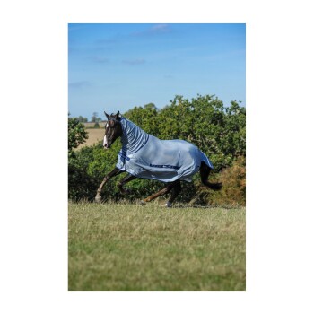 Die Bucas Fliegendecke Buzz-Off Full Neck ist eine hochentwickelte Lösung für dich, wenn du einen umfassenden Schutz vor Fliegen, Insekten und UV-Strahlen für dein Pferd suchst. Diese Decke aus der Buzz-Off-Serie ist aus einem speziell entwickelten, leichten, feinmaschigen Stoff gefertigt, der effektiv Fliegen abwehrt und gleichzeitig vor Sonnenbleichung schützt. Die Buzz-Off Full Neck-Version bietet nicht nur Schutz für den Pferdekörper, sondern auch für den Halsbereich. Der elastische und abnehmbare Bauchlatz sorgt dafür, dass die Decke an ihrem Platz bleibt und schützt den Bauch deines Pferdes zusätzlich vor Insekten und Fliegen. Diese Fliegendecke blockiert außerdem mehr als 75 % der UV-Strahlen und verfügt über eine sonnenreflektierende Außenseite, die dein Pferd auch bei heißem Wetter angenehm kühl hält. Die Decke zeichnet sich durch Schulterabnäher aus, die eine maßgeschneiderte Passform im Brust- und Schulterbereich ermöglichen. Diese Abnäher sind ein charakteristisches Designmerkmal von Bucas. Verfügbar auch in kleineren Größen für Ponys, bietet diese Fliegendecke einen effektiven Insektenschutz. Die Snap-Lock Magnetverschlüsse halten die Decke sicher am Pferd. Zudem verfügt die Decke über T-Bar-Verschlüsse, die zusätzliche Sicherheit bieten.