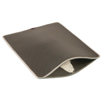Durch die Verwendung von besonders strapazierfähigen und leichten Materialien kann die Zauber-Matte kinderleicht angehoben und transportiert werden. Das aufgefangene Einstreu kann dadurch ganz leicht in den Abfall oder zurück in die Katzentoilette geschüttet werden. Eine gründliche Reinigung unter fließendem Wasser geht somit schnell und leicht von der Hand. Bitte beachten Sie, dass beide Matten vollständig trocknen müssen bevor diese wieder eingesetzt werden sollten. Die Matte ist Wasserabweisend und kinderleicht zu reinigen. Funktionsweise des praktischen 2-Lagen-Systems: Das Waben-Element ist die ideale Schmutzschleuse. Die samtweichen Waben mit Soft-Care Oberfläche bestehen aus einem speziell für dieses Einsatzgebiet entwickelten Schaumstoff. Dieser bietet Ihrer Katze ein angenehm weiches Laufgefühl und reinigt zugleich sanft die Pfoten vom Einstreu. Das Auffang-Element ist besonders leicht und einfach zu reinigen. Das durch das Waben-Element gefallene Einstreu kann von der glatten Oberfläche ganz leicht abgeschüttelt werden. Die Körner fallen zur zweiten Schicht durch, anstatt auf den Boden geschoben zu werden. Die Matte ist sicher, langlebig und funktioniert mit fast jedem Einstreu! JETZT NEU - Matte mit stylischen CanadianCat-Logo im Innenteil bedruckt. Das Logo ist durch die Wabenstruktur sichtbar. Größe der Matte: ca. 60 x 45 cm Wasserabweisend Robustes EVA-Material Kompakte Größe Soft-Oberfläche für zarte Pfoten