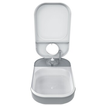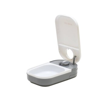 Die wichtigsten Funktionen: Eine große Plastikschale (ohne Eisbeutel) 123 mm x 30 mm x 137 mm (4,75 Zoll x 1,25 Zoll x 5,5 Zoll) fasst 400 g (14 Unzen) Nassfutter (oder gleichwertiges Trockenfutter) Geeignet für eine Katze oder einen kleinen Hund Einfach zu bedienender analoger 24-Stunden-Quarzuhr Leicht zu reinigender, abnehmbarer, spülmaschinenfester Deckel und Schüssel Fliegensicher Manipulationssicher gegen Haustiere. Produktspezifikationen und zusätzliche Informationen: Benötigt 1 AA-Batterie (nicht im Lieferumfang enthalten) für eine Betriebsdauer von ca. 12 Monaten Kann bei Bedarf einfach an einem Holzbrett befestigt werden, um zusätzliche Stabilität zu gewährleisten 3 Jahre Garantie