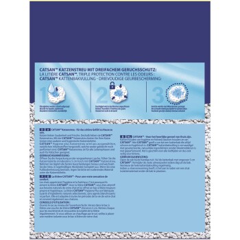 CATSAN™ Hygiene Streu weist eine Besonderheit auf, die speziell für die natürlichen Bedürfnisse Ihrer Katze entwickelt wurde: die weißen Qualitätskörnchen. Ihre feinporige Oberfläche saugt Flüssigkeit sehr schnell auf und sorgt so für eine angenehm trockene Katzentoilette. Als einzige Katzenhygiene bietet CATSAN™ Hygiene Streu einen Extra-Mineralschutz für besonders sichere und lang anhaltende Geruchsbindung. Die Vorteile von CATSAN™ Hygiene Streu: feinporige Hygienekörnchen aus natürlichem Quarzsand und Kalk frei von gefährlichen Fasern und anderen unverträglichen Stoffen verhindert Gerüche 3x wirkungsvoller als herkömmliche Hygienestreus saugt Flüssigkeit wie ein Schwamm sehr schnell auf und schließt sie ein CATSAN™ Hygiene Plus für für garantierten Geruchsschutz Anwendungsempfehlung: Füllen Sie die Katzentoilette mindestens 5cm hoch mit Katzenstreu. Nehmen Sie täglich die festen Ausscheidungen heraus und rütteln die Katzentoilette von Zeit zu Zeit, damit sich die Streu immer wieder vermischt. Wechseln Sie die Streu in regelmäßigen Abständen komplett aus. Tipp: Wenn Sie eine Fußbodenheizung besitzen, legen Sie bitte ein isolierendes Material unter die Katzentoilette. Dadurch verhindern Sie Gerüche, die durch das Erwärmen der in den Körnchen gebundenen Flüssigkeiten entstehen könnten.