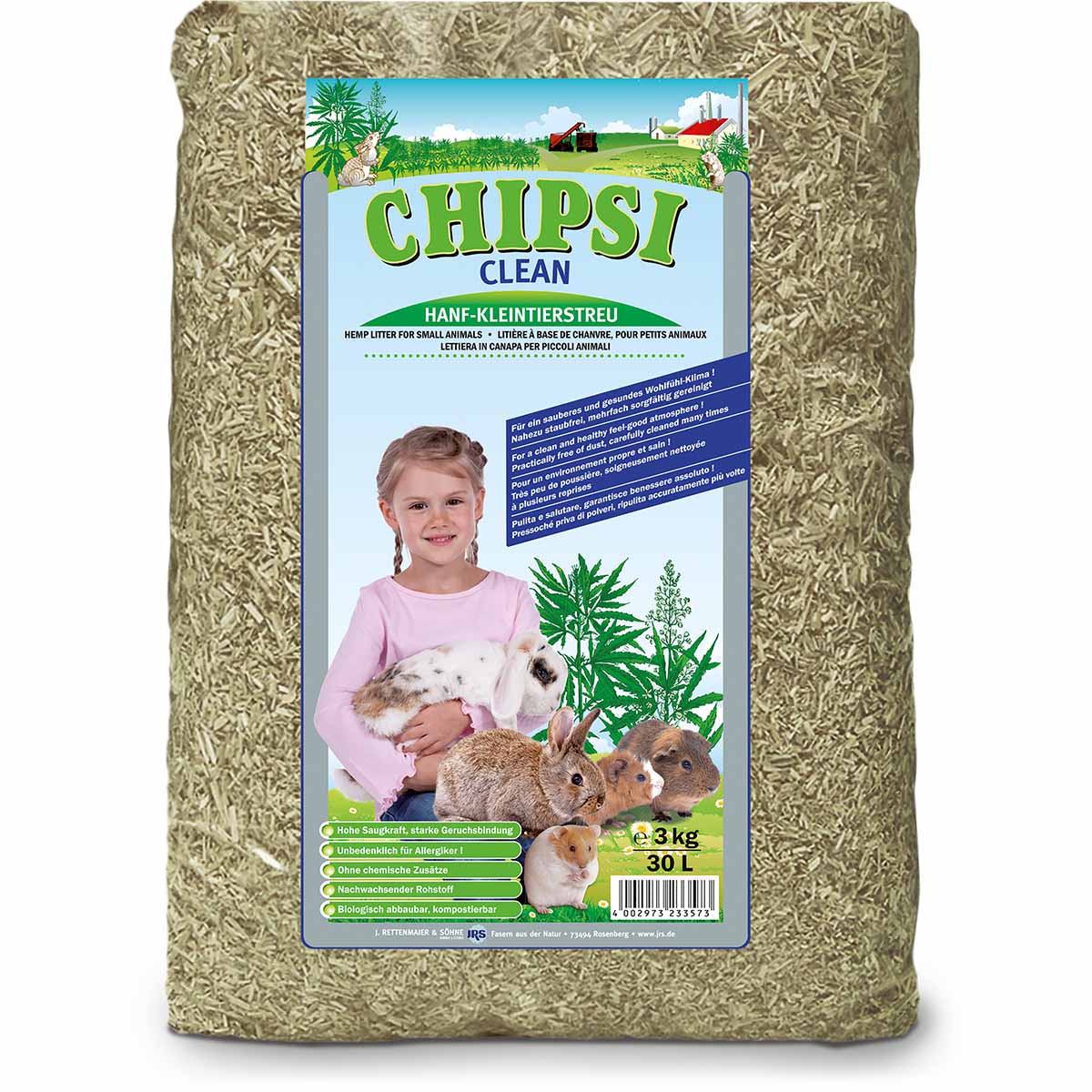 Die Chipsi Kleintiereinstreu Clean 30l besteht aus natürlichem Hanf & ist ideal für Allergiker geeignet: Saugstark, geruchsbindend & ohne chemische Zusätze.
