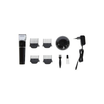Die Akku-Schermaschine DeloX von Clipster ist speziell für die Detailschur konzipiert und bietet dir ein Höchstmaß an Flexibilität und Präzision.Ausgestattet mit einer Scherbreite von 38 mm und einem robusten Edelstahl-Scherkopf, ermöglicht die DeloX hervorragende Schureigenschaften. Dank ihres leistungsstarken, langlebigen Motors und einer dreistufig einstellbaren Schergeschwindigkeit (4000, 5000 oder 6000 Hübe/min) kannst du die Schur optimal an die Bedürfnisse deines Pferdes anpassen.Ein besonderes Highlight ist die digitale Anzeige, die dir stets den Ladezustand, die Öl- und Reinigungsintervalle sowie die verbleibende Akkukapazität anzeigt. Der starke Li-Ion Akku mit einer Kapazität von 2500 mAh bietet eine beeindruckende Akkulaufzeit von bis zu 300 Minuten und ist in derselben Zeit wieder voll aufgeladen.Bei Bedarf kannst du die Schermaschine auch direkt mit dem Netzteil betreiben. Die Schurhöhe lässt sich über ein praktisches Stellrad in fünf Stufen einstellen (0,8 mm bis 2 mm), sodass du maximale Kontrolle über die Schnitttiefe hast.Lieferumfang: 1x Akku-Schermaschine DeloX, 4x Aufsteckkamm (3, 6, 9, 12 mm), 1x Reinigungsbürste, 1x Netzteil, 1x Ladestation, 1x Öl, 1x Bedienungsanleitung.