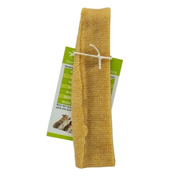 Kausnack für Hunde aus Hartkäse. Fördert die Kaumuskulator und kann Zahnstein verringern. Hergestellt aus Weidemilch aus Schleswig-Holstein in Handarbeit. In verschiedenen Größen erhältlich: XS, 40-53 g S, 60-79 g M, 80-99 g L, 100-109 g XL, 120-139 g XXL, 160-179 g XXXL, 200-229 g