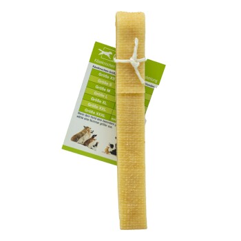 Kausnack für Hunde aus Hartkäse. Fördert die Kaumuskulator und kann Zahnstein verringern. Hergestellt aus Weidemilch aus Schleswig-Holstein in Handarbeit. In verschiedenen Größen erhältlich: XS, 40-53 g S, 60-79 g M, 80-99 g L, 100-109 g XL, 120-139 g XXL, 160-179 g XXXL, 200-229 g