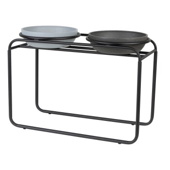 Eine erhöhte Futterstation bietet eine ergonomische Lösung, um die Körperhaltung von Hunden beim Fressen und Trinken zu optimieren. Durch die verbesserte Haltung werden Rücken und Nacken entlastet, was insbesondere für Hunde mit Rücken- oder Nackenproblemen, große Hunderassen sowie ältere Tiere von Vorteil ist. Die District 70 BUTLER-Futterstation ermöglicht es Ihrem Hund, bequem aus einer angepassten Höhe zu fressen und zu trinken, ohne sich bücken oder strecken zu müssen. Dadurch wird nicht nur der Komfort erhöht, sondern auch das Risiko von Verschüttungen minimiert. Vorteile und Eigenschaften der District 70 BUTLER-Futterstation: Ergonomisches Design: Fördert eine natürliche Haltung beim Fressen und Trinken. Stabile Konstruktion: Hergestellt aus robustem Stahl für eine lange Lebensdauer. Rutschfest: Gummifüße sorgen für Stabilität und verhindern ein Verrutschen der Näpfe. Pflegeleicht und praktisch: Einfach zu montieren, mit den Maßen 50,5 x 23 x 36,5 cm. Ideal für spezifische Bedürfnisse: Besonders geeignet für Hunde mit Rücken- oder Nackenproblemen, große Hunde und Senioren. Hinweise zur Pflege: Da die Futterstation aus Stahl gefertigt ist, kann sie bei Feuchtigkeit rosten. Es wird empfohlen, die Station nach Gebrauch gründlich zu trocknen und sie nicht auf feuchten Oberflächen zu platzieren. Mit der District 70 BUTLER-Futterstation entscheiden Sie sich für eine durchdachte Lösung, die Funktionalität, Komfort und Stabilität vereint – für ein entspannteres Fressen und Trinken Ihres Hundes.