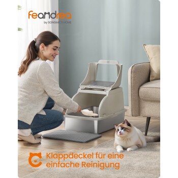 FEANDREA 2er Edelstahl Katzentoilette XL mit Deckel 2 Eingängen beige (FEANDREA)