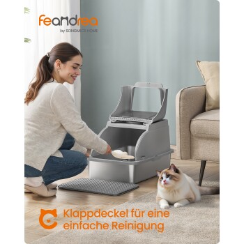 FEANDREA 2er Edelstahl Katzentoilette XL mit Deckel 2 Eingängen grau (FEANDREA)