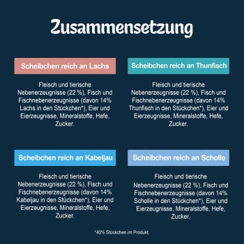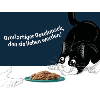 Die perfekt dampfgegarten Scheibchen bieten deiner Katze ein einzigartiges Geschmackserlebnis. Mit einem hohen Proteingehalt und einem unwiderstehlich leckeren Gelee sind diese Mahlzeiten ein wahrer Genuss für deine Katze. Jede einzelne Scheibe wird sorgfältig zubereitet, um das volle Potenzial der hochwertigen Zutaten freizusetzen und ihre schmackhaften Aromen zu entfesseln. FELIX Köstliche Scheibchen Ausgewogenes Alleinfuttermittel für ausgewachsene Katzen Leckere Scheibchen in Gelee Futter für Katzen mit Omega-6-Fettsäuren Hochwertiges Katzennassfutter mit Vitamin A, Vitamin D3 und Vitamin E FELIX - einfach unwiderstehlich! Den Katzennahrung-Mix gibt es in den folgenden Sorten:Geschmacksvielfalt aus dem Wasser Geschmacksvielfalt vom Land
