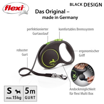 Flexi Black Design Gurt grün S, 5 m, 15 kg (Flexi)