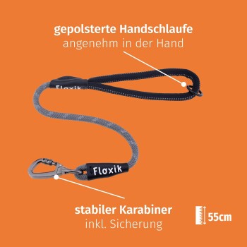 Floxik Kurzführer für Hunde - Kurzleine aus Kletterseilmaterial grau M (Floxik)