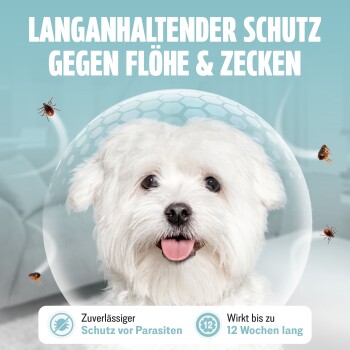 NEU FUTUM Spot On Hund 6 x 1,2 ml Floh und Zeckenschutz für Hunde – Flohmittel für Hunde mit Aktivstoffen Lemon Eukalyptus – Effektiver Zeckenschutz für Hunde – Spot On für Hunde schützt langanhaltend LANGANHALTENDER SCHUTZ GEGEN FLÖHE & ZECKEN – Unser FUTUM Spot On für Hunde bietet einen zuverlässigen Schutz für bis zu 12 Wochen. Das Flohmittel für Hunde schützt effektiv vor Parasiten und sorgt für ein gesundes Fell. EFFEKTIVES FLOH- & ZECKENMITTEL FÜR HUNDE – Die innovative Rezeptur schützt Ihren Hund langanhaltend vor Zecken & Flöhen. FUTUM Spot On Hund ist eine einfache und sichere Lösung für den Schutz Ihres Haustiers. NATÜRLICHE WIRKSTOFFE & SCHONEND ZUR HAUT – FUTUM Hunde Flohmittel enthält Aktivstoffe aus Lemon Eukalyptus und bietet eine sanfte, aber effektive Wirkung gegen Parasiten – ohne aggressive Chemikalien. EINFACHE ANWENDUNG & SCHNELLE WIRKUNG – Unser Zeckenschutz Hunde Spot-On ist leicht aufzutragen und für Hunde ab einem Alter von 16 Wochen geeignet. Einfach mit der Pipette in den Nacken geben und einziehen lassen. MADE IN GERMANY - Unser FUTUM Spot On für Hunde ist eine bewährte Lösung für langanhaltenden Floh und Zeckenschutz für Katzen – ohne unnötige Zusatzstoffe. FUTUM Spot On für Hund – Effektiver Floh- und Zeckenschutz Schützen Sie Ihren Hund zuverlässig mit dem FUTUM Spot On für Katzen – die ideale Lösung für Floh und Zeckenschutz für Katzen. Unser Hunde Flohmittel wirkt sofort und schützt bis zu 12 Wochen lang. Entwickelt für eine einfache Anwendung, ist es eine praktische Alternative zu Flohmittel Hunde Tabletten oder einem Flohhalsband für Hunde. Das FUTUM Spot On Hund ist perfekt für Hunde von 4-10 kg und bietet effektiven Zeckenschutz sowie ein starkes Flohmittel bei Hunde Befall. Die bewährte Rezeptur wirkt schnell gegen Hundeflöhe und schützt langfristig vor Neubefall. Entscheiden Sie sich für den bewährten Hunde Zecken und Flohschutz und halten Sie Ihr Haustier parasitenfrei! Sicherheits- und Gefahrenhinweise: Verursacht schwere Augenreizungen. Darf nicht in die Hände von Kindern gelangen. Bei Kontakt mit den Augen: einige Minuten lang behutsam mit Wasser spülen. Eventuell vorhandene Kontaktlinsen nach Möglichkeit entfernen. Weiter auspülen. Bei anhaltender Augenreizung: Ärztlichen Rat einholen/ärztliche Hilfe hinzuziehen. Enthält Citonellol, Cineol. Kann allergische Reaktionen hervorrufen. Verpackung nicht wiederverwenden und nur völlig restentleert der Werkstoffsammlung zuführen. Wirkstoffe: 300g/Kg Eukalyptus citiodora Öl, hydratisiert, cyclisiert BAuA Reg.Nr.: N-112978 ( PT19 ) BIOZIDPRODUKTE VORSICHTIG VERWENDEN. VOR GEBRAUCH STETS ETIKETT UND PRODUKTBESCHREIBUNG LESEN.