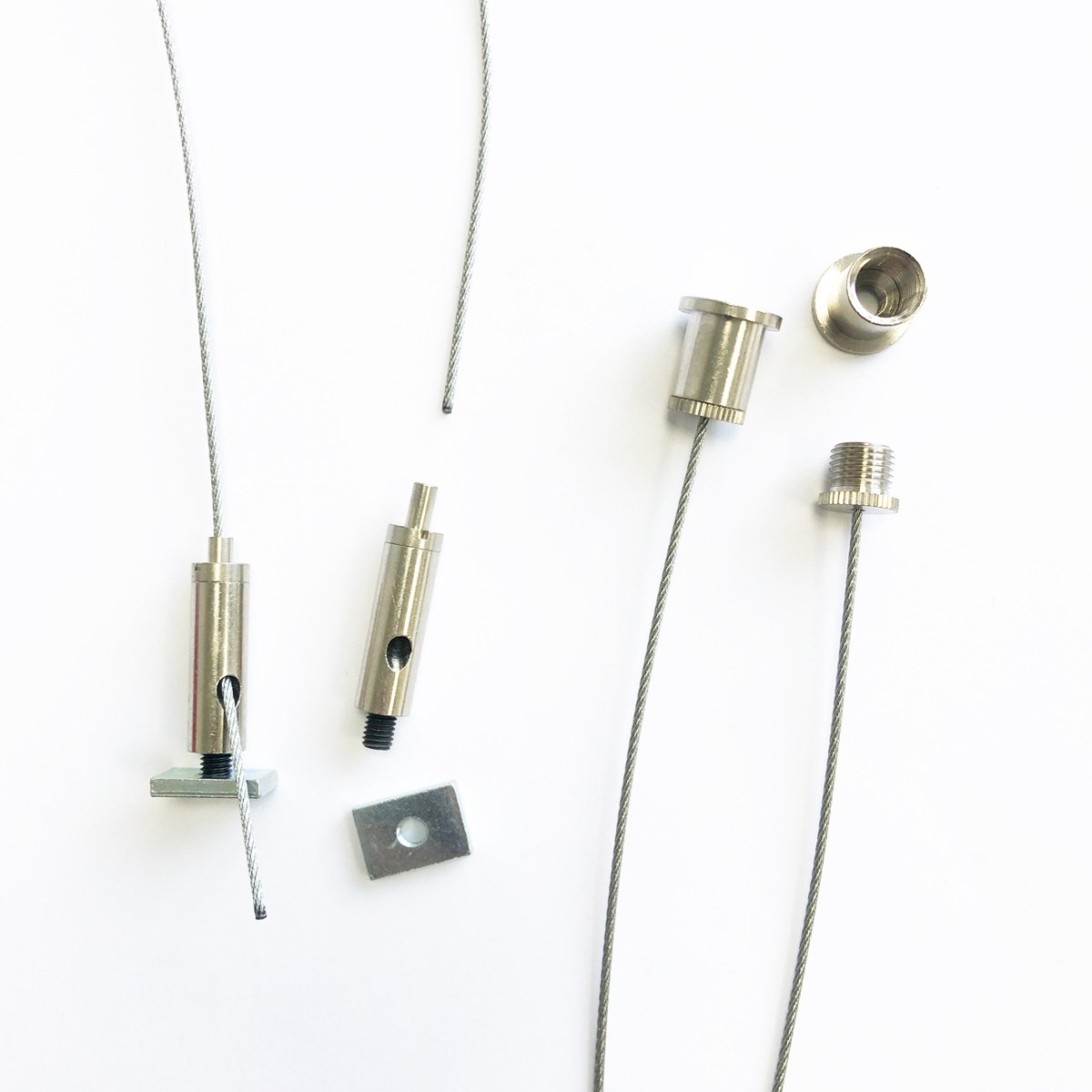 Giesemann M5 Stahlseiltset. Komplettset inkl. Vierkantplatte groß (M5), Schnellmontage für System RAZOR oder PULZAR.