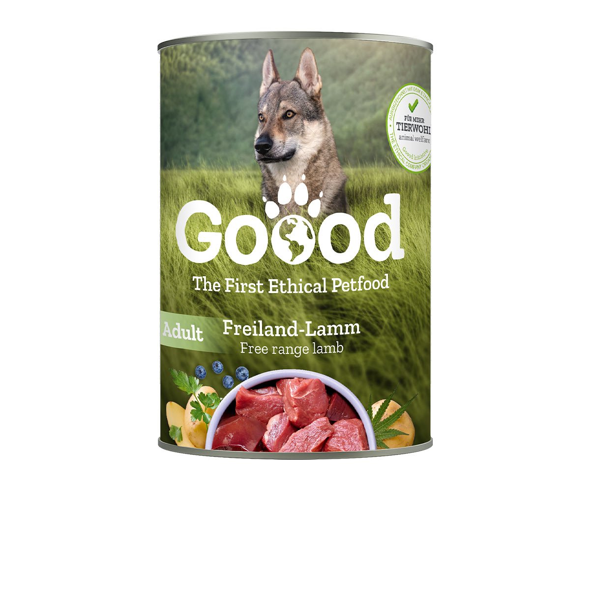 Goood Adult Freiland-Lamm ohne Zucker- und Getreidezusatzzusatz ist ein Alleinfuttermittel für ausgewachsene Hunde. Rezeptur ohne künstliche Konservierungs-, Farb- und Aromastoffe.