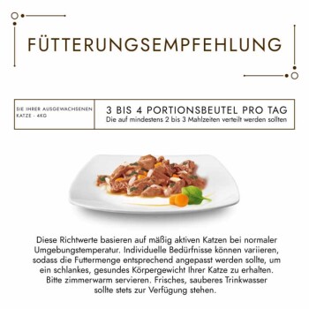 Jedes Menü ist eine erlesene Komposition mit hervorragendem Geschmack. Sie wissen, dass Ihre Katze ein echter Genießer ist und nichts anderes als die feinsten, kulinarischen Erlebnisse verdient. Aus diesem Grund hat Gourmet "A la Carte" kreiert – einzigartige Kreationen vom Gourmet Küchenchef inspiriert: Ausgezeichnete, delikate Häppchen mit Fisch oder Fleisch sind verführerisch mit ausgewählten Zutaten wie Gemüse, Reis oder Pasta-Perlen kombiniert. Gourmet a la Carte bringt eine Welt aus saftigen Kreationen und hervorragendem Geschmack hervor. Ein unwiderstehliches, kulinarisches Geschmackserlebnis wurde speziell kreiert, damit Sie Ihre Samtpfote jeden Tag mit einem erlesenem Menü verwöhnen können. Gourmet a la Carte, jeden Tag ein veredeltes Rezept vom Gourmet Küchenchef inspiriert. Alleinfuttermittel für Katzen, weitere Informationen erhalten Sie hier: info.de@purina.nestle.com
