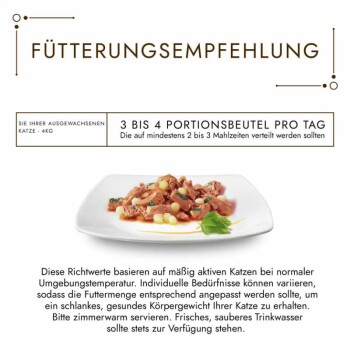 Jedes Menü ist eine erlesene Komposition mit hervorragendem Geschmack. Sie wissen, dass Ihre Katze ein echter Genießer ist und nichts anderes als die feinsten, kulinarischen Erlebnisse verdient. Aus diesem Grund hat Gourmet "A la Carte" kreiert – einzigartige Kreationen vom Gourmet Küchenchef inspiriert: Ausgezeichnete, delikate Häppchen mit Fisch oder Fleisch sind verführerisch mit ausgewählten Zutaten wie Gemüse, Reis oder Pasta-Perlen kombiniert. Gourmet a la Carte bringt eine Welt aus saftigen Kreationen und hervorragendem Geschmack hervor. Ein unwiderstehliches, kulinarisches Geschmackserlebnis wurde speziell kreiert, damit Sie Ihre Samtpfote jeden Tag mit einem erlesenem Menü verwöhnen können. Gourmet a la Carte, jeden Tag ein veredeltes Rezept vom Gourmet Küchenchef inspiriert. Alleinfuttermittel für Katzen, weitere Informationen erhalten Sie hier: info.de@purina.nestle.com