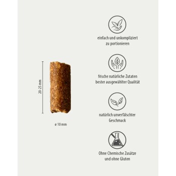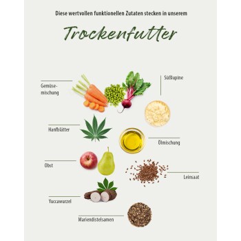 Schonend kaltgepresstes Alleinfuttermittel, hypoallergen, vegetarisch und voller pflanzlicher PROTEINE und wertvoller SUPERFOODS.Unser HAPPY-HYPO-ALLERGEN ist ein hypoallergenes, vegetarisches, naturnahes und eiweissreiches Alleinfuttermittel für sensible Hunde mit Allergien oder Unverträglichkeiten. Unser Futter ist Dank unseres bewährten Kaltpressverfahrens* und unserer ganz besonderen vegetarisch artgerechten Rezeptur (frei von Gluten, Getreide und Fleisch) sehr allergenarm, sehr gut verträglich, sowie magenschonend für Fellnasen mit einem empfindlichen Magen-Darm. Es steckt voller pflanzlicher und hochwertiger Eiweiße und Aminosäuren aus nährstoffreichen Pflanzenquellen wie Hanf oder der Bohnenpflanze Lupine, welche ein ähnliches Aminosäuremuster wie Fleisch haben, aber deutlich weniger Allergene aufweisen. Die in unserem HAPPY HYPO enthaltenen, mit Experten und Liebe ausgewählten und abgestimmten, SUPERFOODS und Nuss-Öl Kompositionen versorgen Deine liebe Fellnase auf natürliche Weise mit vielen wertvollen Vitaminen, sowie Nähr- & Vitalstoffen, für ein natürlich starkes Immunsystem. SUPERFOODS wie z. B. Yucca, Chicorée, Hanf, Lupine, Mariendistel & Aronia haben kleine SUPERKRÄFTE und können Hunde bei lebenswichtigen Prozessen im Körper unterstützen. Unser Futter wird in unserem besonderen vitaminschonenden Kaltpressverfahren hergestellt, sodass die wertvollen Vitamine unserer ausgewählten Zutaten erhalten bleiben. Unsere Rezeptur ist auf den hohen Nährstoffbedarf der Fellnasen abgestimmt und hat bereits mehrfach Hunden mit vielen Allergien eine wundervolle Lebensqualität zurück gegeben.