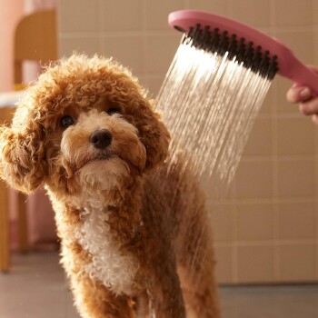 Entspannt Duschen für Hunde Sag "Wuff" zur original DogShower von hansgrohe. Es gibt sie in Matt-Weiß, Matt-Schwarz, Petrol und Pink. Sie wurde von Brause-Experten mit einem Verständnis für Hunde entwickelt, um das Duschen für Hund und Halter entspannter zu machen. Das Fell wird mit einem speziellen Duschkopf sauber gestreichelt. Weiche Silikondüsen bringen dabei das Wasser bis tief ins Unterfell und spülen Shampoo gründlich aus. Weniger Stress, weniger Chaos - lass die Pfützen kommen! Der Fellstrahl nutzt die volle Länge des Duschkopfs, um möglichst viel Fell auf einmal abzubrausen. Der Beinstrahl nutzt den vorderen Teil der Strahlscheibe, um die empfindlichen Beine sanft, aber gezielt zu reinigen. Ein fokussierter Brausestrahl an der Spitze des Brausekopfs spült kleine Steinchen oder auch Tausalz zuverlässig zwischen den Zehen weg. Die weichen, biegsamen und extra langen Silikondüsen bringen das Wasser gezielt bis ins Unterfell. Dort spülen sie Shampoo gründlich aus und können helfen, Hautirritationen zu vermeiden. Die leicht gebogene Form der DogShower folgt der Silhouette eines Hundes. Das vereinfacht und beschleunigt das großflächige Sauberstreicheln. Der ergonomische Griff lässt sich zudem gut greifen. Über die Select-Taste von hansgrohe lassen sich die Strahlarten mit einer Hand umschalten. Die andere Hand bleibt frei, um den Hund zu beruhigen und zu halten. Die eingebaute Wasserbremse verringert den Wasserdurchfluss ganz automatisch, wenn der Duschkopf losgelassen wird. Das verhindert eine ungewollte Überschwemmung. Die DogShower wird auf jeden handelsüblichen Duschschlauch geschraubt. Die optionale Schnellkupplung (Artikelnummer: 1382245) ermöglicht den Tausch sogar auf Knopfdruck. Mit einem Adapter passt die DogShower auch auf einen Gartenschlauch.