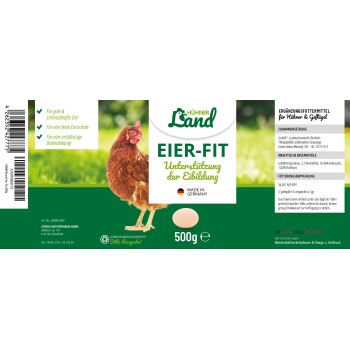 Für gute & schmackhafte Eier Eier-Fit für Hühner & Geflügel Lässt die Legeleistung Deiner Hennen etwas zu wünschen übrig? Ist der Dotter nicht mehr so kräftig, wie er es einmal war oder die Eierschalen nicht mehr so stabil? Dann lass uns doch ein bisschen Schwung in den Hühnerstall bringen und den Dotter wieder kräftig orange-gelb strahlen lassen! HÜHNER Land Eier-Fit macht die Eier fit! Das Pulver fördert die Eibildung und regt Deine Hennen zum Legen von Eiern an. Das enthaltene Zeolith ist ein mikroporöses Vulkangestein, welches vor Millionen von Jahren entstand, als bei Vulkanausbrüchen die glühende Lavaerde ins Meer fiel und dieses zum Sieden brachte. Zeolith soll Giftstoffe binden können und zu einer normalen Verdauung beitragen. Außerdem soll es zudem noch positive Auswirkungen auf Haut, Knochen und die Abwehrkräfte haben – ein Allroundtalent! Das enthaltene Leinkuchenmehl kann die Darmflora unterstützen, indem es die Darmschleimhaut schützt. Des Weiteren ist es hochverdaulich und soll die Aufnahme fettlöslicher Vitamine verbessern. Bierhefe rundet die Komposition ab: der Hefepilz liefert dem Organismus einen „Cocktail“ aus wertvollen B-Vitaminen, Mineralien und wichtigen Aminosäuren und kann so Haut, Haare, das Nervensystem und das Muskelgewebe stärken. Durch die Zusammenarbeit dieser drei Ingredienzen werden Deine Hennen gestärkt und können gesunde Eier legen. Wichtige Vitamine, Mineralien und Aminosäuren Eibildung und Legeleistung wird angeregt Gut bekömmlicher Zusatz für gesunde und leckere Eier Kräftiger Dotter und stabile Schale Unser Eier-Fit Pulver ist ein wertvolles Ergänzungsfuttermittel, welches Deine Legehennen mit wichtigen Nährstoffen, Vitaminen und Mineralien versorgt. Schon bald werden Deine fleißigen Hennen viele wunderschöne, gesunde und leckere Eier legen. Unsere HÜHNER Land Naturprodukte werden in Deutschland von Experten entwickelt & hergestellt. Zum Wohl Deiner Hühner setzen wir auf 100% Qualität.