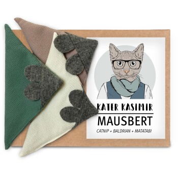 Kater Kasimir 3 x Mausbert - Die 2-in-1 Spielmaus für Katzen, handgemacht aus BIO-Baumwolle mit Katzenminze-, Baldrian- und Matatabi-Füllung (Kater Kasimir)