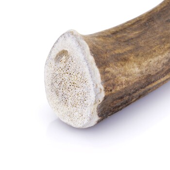 Zahnpflege ist wichtig ! In der Natur reinigen Tiere Ihre Zähne auf ganz natürliche Weise durch das Kauen von z.B. Knochen. Heutzutage erhält der Hund zwar eine Vielzahl an Nährstoffen über die Futtermittel, jedoch fehlt hier die Zahnreinigung komplett. Was bietet sich als Ersatz mehr an als ein vollkommen natürlicher Kausnack den unsere Hunde zudem lieben ? Larsson-SnacksGeweihstücke sind hier die ideale Zahnpflege ! Aufgrund ihrer Zusammensetzung sindGeweihstücke ausgesprochen gesund.Geweihe bestehen aus wertvollen Mineralien und Spurenelementen wie etwa Eisen, Phosphor, Schwefel, Calcium, Magnesium, Kalium und Zink (um nur einige zu nennen) und diese auch noch in einem optimalen Verhältnis. Der jeweilige Gehalt dieser Nährstoffe hängt vom Lebensraum der Tiere ebenso, wie von den Witterungsbedingungen und Essgewohnheiten der Tiere ab. Das einmalige Abwerfen derGeweihe im Jahr, macht diese zu, im wahrsten Sinne des Wortes, einem nachwachsenden Rohstoff. Kein Tier wird hierfür getötet sondern liefert uns diesen tollen Rohstoff vollkommen freiwillig. Um den Tieren den natürlichen Lebensraum nicht zu zerstören, und sie nicht durch Motorengeräusche unnötigem Stress auszusetzen, erfolgt das Einsammeln ausschließlich zu Fuß und von Hand. Hier zählt jeder Tag! Je frischer dieGeweihe sind, umso mehr Nährstoffe können bei der weiteren Verarbeitung erhalten werden. •Geweihe sind sehr hart und reich an Kalzium und anderen Mineralien • UnsereGeweihstücke werden beim Kauen weder klebrig noch schleimig • Unser Snack reinigt und pflegt auf natürliche Weise die Zähne Ihres Hundes und ist zu 100% Natur pur • Larsson-Snack ist ein ehrliches, nachhaltiges, tierfreundliches, robustes und zudem umweltbewusstes Naturprodukt 80 - 120g oder > 14 cm Kleiner Hinweis: Stellen Sie sicher, dass die Größe, die Sie kaufen, der Größe und Beißkraft Ihres Hundes entsprechen. Beaufsichtigen Sie bitte Ihren Hund während des Kauens und entfernen Sie gegebenenfalls kleine Reststücke.