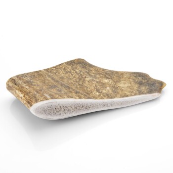 Auch im Alter liebt man Leckereien - das ist bei Hunden nicht anders. Doch unsere lieben Vierbeiner im gehobenen Alter sollten eben ganz beonders ausgewogenes Futter und Snacks erhalten. Auch hier ist die einzigartige Zusammensetzung derGeweih-Snacks die ideale Lösung. Durch die weichere Struktur der Elk-Schäufle ist ein Kauen auch bei eventuellen Zahnproblemen möglich. Welpen und Junghunde stellen ganz besondere Ansprüche nicht nur an ihr Futter sondern auch an ihre Snacks. Die empfindlichen kleinen Zähne und die noch im Wachstum befindlichen Knochen dürfen weder überlastet noch überfordert werden. Die 100 % natürliche Zusammensetzung der Larsson-Snacks garantiert hier die ausgewogene Mischung von wichtigen Mineralien und Spurenelementen. Zahnpflege ist wichtig ! In der Natur reinigen Tiere Ihre Zähne auf ganz natürliche Weise durch das Kauen von z.B. Knochen. Heutzutage erhält der Hund zwar eine Vielzahl an Nährstoffen über die Futtermittel, jedoch fehlt hier die Zahnreinigung komplett. Was bietet sich als Ersatz mehr an als ein vollkommen natürlicher Kausnack den unsere Hunde zudem lieben? Larsson-SnacksGeweihstücke sind hier die ideale Zahnpflege! Aufgrund ihrer Zusammensetzung sindGeweihstücke ausgesprochen gesund.Geweihe bestehen aus wertvollen Mineralien und Spurenelementen wie etwa Eisen, Phosphor, Schwefel, Calcium, Magnesium, Kalium und Zink (um nur einige zu nennen) und diese auch noch in einem optimalen Verhältnis. • UnsereGeweihstücke werden beim Kauen weder klebrig noch schleimig • Unser Snack reinigt und pflegt auf natürliche Weise die Zähne Ihres Hundes und ist zu 100% Natur pur • Larsson-Snack ist ein ehrliches, nachhaltiges, tierfreundliches, robustes und zudem umweltbewusstes Naturprodukt 120 - 180g Stellen Sie sicher, dass die Größe, die Sie kaufen, der Größe und Beißkraft Ihres Hundes entsprechen. Beaufsichtigen Sie bitte Ihren Hund während des Kauens und entfernen Sie gegebenenfalls kleine Reststücke.