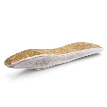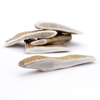 Auch im Alter liebt man Leckereien - das ist bei Hunden nicht anders. Doch unsere lieben Vierbeiner im gehobenen Alter sollten eben ganz beonders ausgewogenes Futter und Snacks erhalten. Auch hier ist die einzigartige Zusammensetzung derGeweih-Snacks die ideale Lösung. Durch die weichere Struktur der Elk-Schäufle ist ein Kauen auch bei eventuellen Zahnproblemen möglich. Welpen und Junghunde stellen ganz besondere Ansprüche nicht nur an ihr Futter sondern auch an ihre Snacks. Die empfindlichen kleinen Zähne und die noch im Wachstum befindlichen Knochen dürfen weder überlastet noch überfordert werden. Die 100 % natürliche Zusammensetzung der Larsson-Snacks garantiert hier die ausgewogene Mischung von wichtigen Mineralien und Spurenelementen. Zahnpflege ist wichtig ! In der Natur reinigen Tiere Ihre Zähne auf ganz natürliche Weise durch das Kauen von z.B. Knochen. Heutzutage erhält der Hund zwar eine Vielzahl an Nährstoffen über die Futtermittel, jedoch fehlt hier die Zahnreinigung komplett. Was bietet sich als Ersatz mehr an als ein vollkommen natürlicher Kausnack den unsere Hunde zudem lieben? Larsson-SnacksGeweihstücke sind hier die ideale Zahnpflege! Aufgrund ihrer Zusammensetzung sindGeweihstücke ausgesprochen gesund.Geweihe bestehen aus wertvollen Mineralien und Spurenelementen wie etwa Eisen, Phosphor, Schwefel, Calcium, Magnesium, Kalium und Zink (um nur einige zu nennen) und diese auch noch in einem optimalen Verhältnis. • UnsereGeweihstücke werden beim Kauen weder klebrig noch schleimig • Unser Snack reinigt und pflegt auf natürliche Weise die Zähne Ihres Hundes und ist zu 100% Natur pur • Larsson-Snack ist ein ehrliches, nachhaltiges, tierfreundliches, robustes und zudem umweltbewusstes Naturprodukt 50 - 80g Stellen Sie sicher, dass die Größe, die Sie kaufen, der Größe und Beißkraft Ihres Hundes entsprechen. Beaufsichtigen Sie bitte Ihren Hund während des Kauens und entfernen Sie gegebenenfalls kleine Reststücke.