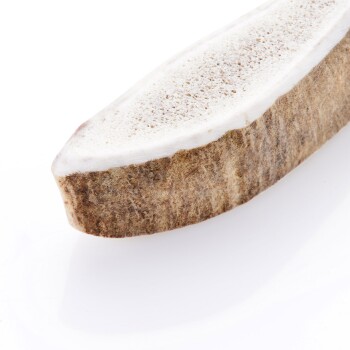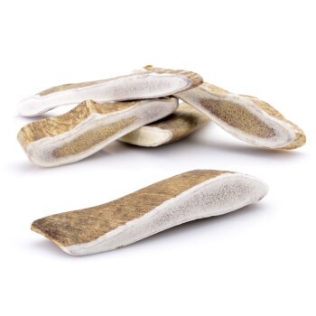 Auch im Alter liebt man Leckereien - das ist bei Hunden nicht anders. Doch unsere lieben Vierbeiner im gehobenen Alter sollten eben ganz beonders ausgewogenes Futter und Snacks erhalten. Auch hier ist die einzigartige Zusammensetzung derGeweih-Snacks die ideale Lösung. Durch die weichere Struktur der Elk-Schäufle ist ein Kauen auch bei eventuellen Zahnproblemen möglich. Welpen und Junghunde stellen ganz besondere Ansprüche nicht nur an ihr Futter sondern auch an ihre Snacks. Die empfindlichen kleinen Zähne und die noch im Wachstum befindlichen Knochen dürfen weder überlastet noch überfordert werden. Die 100 % natürliche Zusammensetzung der Larsson-Snacks garantiert hier die ausgewogene Mischung von wichtigen Mineralien und Spurenelementen. Zahnpflege ist wichtig ! In der Natur reinigen Tiere Ihre Zähne auf ganz natürliche Weise durch das Kauen von z.B. Knochen. Heutzutage erhält der Hund zwar eine Vielzahl an Nährstoffen über die Futtermittel, jedoch fehlt hier die Zahnreinigung komplett. Was bietet sich als Ersatz mehr an als ein vollkommen natürlicher Kausnack den unsere Hunde zudem lieben? Larsson-SnacksGeweihstücke sind hier die ideale Zahnpflege! Aufgrund ihrer Zusammensetzung sindGeweihstücke ausgesprochen gesund.Geweihe bestehen aus wertvollen Mineralien und Spurenelementen wie etwa Eisen, Phosphor, Schwefel, Calcium, Magnesium, Kalium und Zink (um nur einige zu nennen) und diese auch noch in einem optimalen Verhältnis. • UnsereGeweihstücke werden beim Kauen weder klebrig noch schleimig • Unser Snack reinigt und pflegt auf natürliche Weise die Zähne Ihres Hundes und ist zu 100% Natur pur • Larsson-Snack ist ein ehrliches, nachhaltiges, tierfreundliches, robustes und zudem umweltbewusstes Naturprodukt bis 50g Stellen Sie sicher, dass die Größe, die Sie kaufen, der Größe und Beißkraft Ihres Hundes entsprechen. Beaufsichtigen Sie bitte Ihren Hund während des Kauens und entfernen Sie gegebenenfalls kleine Reststücke.