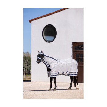 LeMieux Fliegendecke Armour-Tek - Der ideale Schutz bei warmem Wetter! Endlich ist er da - der Sommer! Doch damit kommen auch die lästigen Fliegen und Mücken. Doch mit der LeMieux Fliegendecke Armour-Tek brauchst du dir keine Sorgen mehr zu machen. Sie ist superleicht und bietet dennoch einen optimalen Schutz bei warmem Wetter. Das innovative Mikro-Netzgewebe sorgt für eine hochatmungsaktive Barriere, die deinem Pferd den nötigen Schutz vor Insekten bietet. Der Bauchlatz maximiert die Abdeckung und verfügt über einen Drei-Gurt-Verschluss mit abnehmbarem Mittelgurt. Das spezielle vordere Verschlusssystem verteilt den Druck, um Reibung an der Schulterspitze und auf der Brust zu vermeiden. Die LeMieux Fliegendecke Armour-Tek bietet einen UV-Schutz von 85% und ist somit der perfekte Begleiter für sonnige Tage.
