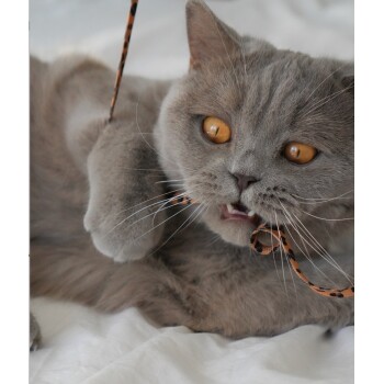 Katzen lieben es, einer Spielangel hinterherzujagen. Die schnellen Bewegungen und das animalische Design reizen ihren Jagdinstinkt. Dieser handgemachte Katzenangel besteht aus einem schönen Griffstück aus Buche, an dem ein ca. 110 cm langes Band im Leoparden-Design hängt.
