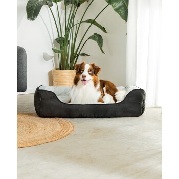 HOHER GEMÜTLICHKEITSFAKTOR Dein Vierbeiner wird dieses besonders weiche und kuschelige Hundebett lieben. Das moderne Design sorgt für einen echten Hingucker in Ihrem Zuhause. 2-in-1 FUNKTION Das Hundekörbchen ist wendbar und kann somit in 2 verschiedenen Ausführungen genutzt werden. KOMFORTABLER EINSTIEG Der tiefe Einstieg erleichtert den Ein- u. Ausstieg für Hunde jeder Größe und fördert so das Wohlbefinden. EINFACHE REINIGUNG Das Hundekissen ist pflegeleicht und kann von Hand gewaschen werden. VIELFÄLTIGKEIT Für eine optimale Wahl gibt es unseren Hundekorb in den Farben schwarz/grau, dunkelgrau/grau und braun/beige sowie 3 verschiedenen Größen. S = 60 cm x 50 cm M = 80 cm x 60 cm L = 110 cm x 80 cm Genaue Maße sind den Bildern zu entnehmen. Dieses formschöne Hundesofa ist besonders weich und bietet deinem Vierbeiner einen gemütlichen Schlaf- und Rückzugsplatz. Durch die modernen und warmen Farben lässt sich das Haustierkissen besonders gut in jede Wohnsituation integrieren. Das Hundeliegekissen ist wendbar und somit in 2 verschiedenen Designs nutzbar. Die Reinigung des Hundeliegeplatzes kann durch Handwäsche erfolgen. Wir bieten dir verschiedene Größen und Farben zur Auswahl, die genauen Maße kannst du den Bildern entnehmen.