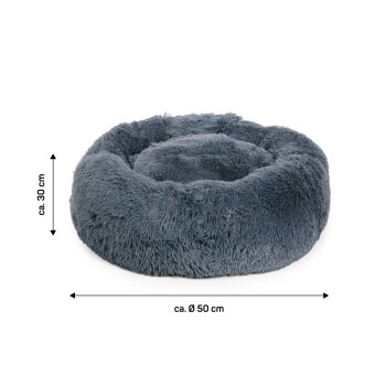 Dank seiner runden Form ist dieses hochwertige Haustierbett ideal für Vierbeiner, die es lieben, sich zusammenzurollen und einzukuscheln. Der erhöhte Rand schafft ein Gefühl der Sicherheit. Der Boden mit Anti-Rutsch-Noppen sorgt für festen Bodenhalt und optimale Sicherheit. Das Kuschelkissen ist leicht und tragbar, perfekt auch für unterwegs. Das Bett kann problemlos per Handwäsche gereinigt werden. Für den idealen Liegekomfort und die optimale Form, lassen Sie das Hundebett nach dem Auspacken etwas Luft ziehen und schütteln und kneten Sie die Füllung ein wenig zurecht. Eigenschaften der Ceddie Hundebetten: Donut-Form für einen stylischen und modernen Look Anti-Rutsch-Funktion am Boden Geeignet für Hunde aller Rassen und Größen Hergestellt aus kuscheligem und weichem Material Hochwertige Verarbeitung und großzügige Polsterung Ceddie Hundebetten - Wo Ihr Haustier Komfort findet. Unsere kleine Manufaktur, Wallace & Jones, hat es sich zur Aufgabe gemacht, Alltagsgegenstände praktisch und schön zu gestalten. Wir bieten exklusiv in Deutschland handgefertigte Hundebetten an. Ob traditionell oder modern, unsere Liebe zum Detail und die Leidenschaft für kompromisslose Qualität sind Teil unserer Philosophie. Mit den LITTLE LORD Hundebetten & Liegematten bieten wir unseren geliebten Vierbeinern den idealen Schlaf- & Liegeplatz, ganz nach ihren Bedürfnissen. Größentabelle: Größe S: ca. 50 x 30 x 50 cm Größe M: ca. 60 x 30 x 60 cm Größe L: ca. 80 x 30 x 80 cm Größe XL: ca. 100 x 30 x 100 cm