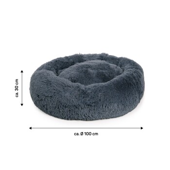 Dank seiner runden Form ist dieses hochwertige Haustierbett ideal für Vierbeiner, die es lieben, sich zusammenzurollen und einzukuscheln. Der erhöhte Rand schafft ein Gefühl der Sicherheit. Der Boden mit Anti-Rutsch-Noppen sorgt für festen Bodenhalt und optimale Sicherheit. Das Kuschelkissen ist leicht und tragbar, perfekt auch für unterwegs. Das Bett kann problemlos per Handwäsche gereinigt werden. Für den idealen Liegekomfort und die optimale Form, lassen Sie das Hundebett nach dem Auspacken etwas Luft ziehen und schütteln und kneten Sie die Füllung ein wenig zurecht. Eigenschaften der Ceddie Hundebetten: Donut-Form für einen stylischen und modernen Look Anti-Rutsch-Funktion am Boden Geeignet für Hunde aller Rassen und Größen Hergestellt aus kuscheligem und weichem Material Hochwertige Verarbeitung und großzügige Polsterung Ceddie Hundebetten - Wo Ihr Haustier Komfort findet. Unsere kleine Manufaktur, Wallace & Jones, hat es sich zur Aufgabe gemacht, Alltagsgegenstände praktisch und schön zu gestalten. Wir bieten exklusiv in Deutschland handgefertigte Hundebetten an. Ob traditionell oder modern, unsere Liebe zum Detail und die Leidenschaft für kompromisslose Qualität sind Teil unserer Philosophie. Mit den LITTLE LORD Hundebetten & Liegematten bieten wir unseren geliebten Vierbeinern den idealen Schlaf- & Liegeplatz, ganz nach ihren Bedürfnissen. Größentabelle: Größe S: ca. 50 x 30 x 50 cm Größe M: ca. 60 x 30 x 60 cm Größe L: ca. 80 x 30 x 80 cm Größe XL: ca. 100 x 30 x 100 cm