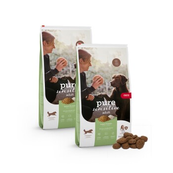 Das Trockenfutter pure sensitive Insect Protein ist besonders für sensible Hunde geeignet. Mit Larven der Hermetia illucens (Schwarze Soldatenfliege) als einziger tierischen Proteinquelle und leicht verdaulichem Reis verzichten wir in der Rezeptur auf glutenhaltige Zutaten. Die hoch verdauliche Rezeptur ist nach dem Limited Ingredient Diet (L.I.D.) Prinzip konzipiert und in seiner Zusammensetzung auf die wesentlichen Zutaten für sensible Hunde konzentriert. Das Risiko von Nahrungsunverträglichkeiten und Allergien kann so minimiert werden. Zusätzlich trägt prebiotisches Inulin zu einer gesunden Darmflora bei und sorgt für eine optimale Verdauung. Gesunde Haut & glänzendes Fell werden durch die in Lachsöl, Leinsaat und Sonnenblumenöl enthaltenen Omega-3- und Omega-6-Fettsäuren erzeugt. Umweltfreundliches Produkt: Insektenprotein statt Fleisch – bei der Produktion von Insektenprotein wird weniger Wasser verbraucht und geringerer Platzbedarf benötigt.