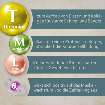 montanus® nature Amino-Forte ist mit den reinen und 100 % dünndarmverdaulichen Aminosäuren Threonin, Methionin und Lysin ausgestattet. Vitamin B12 unterstützt den Muskelstoffwechsel und ist essentiell für die Leistungsbereitschaft der Pferde.
