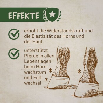 montanus® nature Biotin-Konzentrat: · frei von Farb- und Konservierungsstoffen · getreide- und stärkefrei · ohne Zuckerzusatz · gentechnikfrei · kräftigt das Hufhorn · fördert den Hautstoffwechsel · unterstützt den Fellwechsel · made in Germany Es versorgt das Hufhorn, die Haut und das Haarkleid mit den essentiellen Nährstoffen Biotin, Zink, Kupfer und Methionin. montanus® nature Biotin-Konzentrat eignet sich für Pferde jeden Alters und aller Rassen.