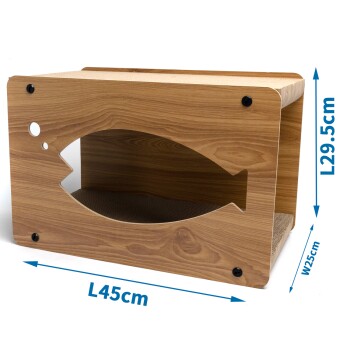 Das 2-in-1 Katzen Kratzbrett und Katzentunnel ist die perfekte Kombination aus Spielspaß und Krallenpflege für Ihre Katze. Mit den Maßen 45 x 25 x 29,5 cm bietet es ausreichend Platz zum Kratzen, Spielen und Entspannen. Die stilvolle braune Farbe fügt sich harmonisch in jede Wohnumgebung ein und macht das Kratzbrett zu einem echten Hingucker.Gefertigt aus hochwertigem, umweltfreundlichem Wellpapier ist das Kratzbrett nicht nur ungiftig, sondern auch besonders langlebig und widerstandsfähig gegen Kratzer. Das Material ist sicher für Katzen und unterstützt gleichzeitig die natürliche Krallenpflege. Zusätzlich sorgt die im Lieferumfang enthaltene Katzenminze dafür, dass das Interesse der Katze geweckt wird und sie das Kratzbrett gerne benutzt.Das innovative 2-in-1-Design ermöglicht vielseitige Einsatzmöglichkeiten: Das Kratzbrett kann schnell und einfach zu einem Katzentunnel zusammengebaut werden, der zum Verstecken, Spielen und Ausruhen einlädt. Diese Funktion fördert die Interaktion und animiert Katzen zum aktiven Spielen, wodurch Langeweile vermieden wird.Dank der kompakten Maße lässt sich das Kratzbrett problemlos in jeder Wohnung aufstellen. Es ist leicht und kann bei Bedarf einfach umgestellt oder transportiert werden. Die Kombination aus Kratzfläche und Spieltunnel bietet Katzen eine ideale Beschäftigungsmöglichkeit und trägt gleichzeitig zur Krallenpflege und Stressabbau bei.Das 2-in-1 Katzen Kratzbrett und Katzentunnel vereint Funktionalität, Spielspaß und Krallenpflege in einem Produkt und sorgt dafür, dass Ihre Katze rundum zufrieden ist.