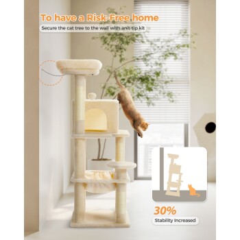 Pawz Road 116 cm Kratzbaum für 2-3 Katzen mit Hängematte beige (Pawz Road)