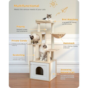 Katzen lieben Höhe und Geborgenheit Dieser kompakte Kratzbaum von PAWZ Road bietet beides! Ideal für kleine Katzen und Kätzchen, schafft er einen gemütlichen Rückzugsort mit vielen Spiel- und Klettermöglichkeiten. Robustes Sisalkratzbrett für gesunde Krallen Neben dem klassischen Sisalpfosten sorgt ein zusätzliches Kratzbrett dafür, dass Ihre Katze ihre Krallen ausgiebig wetzen kann – und Ihre Möbel bleiben verschont. Hoch oben, sicher und bequem Die weiche Plüschsitzfläche mit erhöhtem Rand lädt zum Ausruhen ein. Von hier aus hat Ihre Katze alles im Blick – ob sie nun ein Nickerchen macht oder neugierig ihre Umgebung beobachtet. Spielen, Springen, Entdecken Vier Ebenen sorgen für Abwechslung: vom Kratzen über das Erkunden der Kuschelhöhle bis hin zur Hängematte – oder dem Spielen mit dem baumelnden Ball. Für Wohnungskatzen ist das tägliche Training gesichert. Einfacher Aufbau & pflegeleicht Der Kratzbaum lässt sich mit der beiliegenden Anleitung und den Werkzeugen schnell montieren. Die Sitzfläche ist abnehmbar und alle Plüschteile lassen sich leicht reinigen – per Handwäsche oder vorsichtiges Bürsten. Service ohne Sorgen PAWZ Road bietet Ihnen vor und nach dem Kauf einen zuverlässigen Kundenservice. Bei Fragen zur Qualität oder Montage hilft unser Team schnell und unkompliziert weiter.