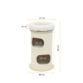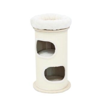Extra Höhe für große Abenteuer Mit beeindruckenden 89 cm Höhe und zwei großzügigen Einstiegen bietet der Bamboo Tower L mehr Platz zum Klettern, Spielen und Ausruhen. Die obere Liegefläche ist perfekt für große Katzenrassen wie Maine Coon oder Norwegische Waldkatze – mit bester Aussicht über ihre Umgebung. Höchster Komfort auf allen Ebenen Zwei geräumige Höhlen mit weichen, herausnehmbaren und waschbaren Kissen machen den Bamboo L-Tower zu einem gemütlichen Rückzugsort. Jede Ebene ist leicht zugänglich, auch für ältere oder weniger agile Katzen. Gebaut für Kratzspaß, gemacht für die Ewigkeit Die stabile Rundkonstruktion mit rutschfester Bodenplatte und komplett mit strapazierfähigem Sisal umwickelter Außenfläche hält selbst wildem Spiel stand. Langlebig, platzsparend und ideal für tägliche Krallenpflege, während deine Möbel geschützt bleiben.