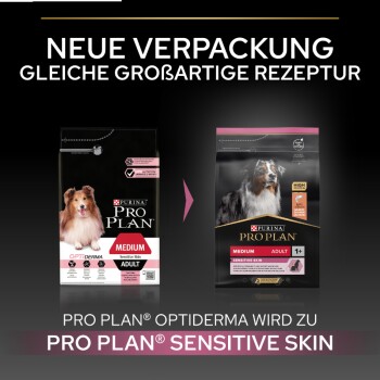 Manche Welpen und ausgewachsene Hunde leiden an sensibler Haut. Diese Hunde, die ansonsten gesund sind, haben im Gegensatz zu anderen eine höhere Tendenz zum Kratzen gegen den Juckreiz. Darüber hinaus haben sie womöglich mehr Schuppenbildung als andere Hunde, die keine sensible Haut besitzen. Von unseren Tierärzten und Ernährungswissenschaftlern entwickelt, bietet PURINA PRO PLAN Sensitive Skin eine fortschrittliche Ernährung, die die sensible Haut von Hunden unterstützt. Unser Futter enthält eine besondere Mischung aus hautspezifischen Nährstoffen, die nachweislich die Gesundheit der Haut unterstützt und ein schönes Fell fördert. Ausgewählte Proteinquellen helfen, eine mögliche Hautreaktion bei Futtermittelempfindlichkeit zu reduzieren. Unser vollwertiges Hundefutter ist speziell auf die Bedürfnisse von ausgewachsenen Hunden mittelgroßer Rassen abgestimmt. Unser Hundefutter ohne Weizen ist mit ausgewählten Proteinquellen ausgestattet, um mögliche Hautbeschwerden, die häufig im Zusammenhang mit einer Nahrungsmittelunverträglichkeit entstehen, zu reduzieren. Vorteile im Überblick: Alleinfuttermittel für ausgewachsene mittelgroßer Rassen Weizenfreies Trockenfutter mit Reis Für eine gesunde Haut und ein schönes Fell Unterstützt die Gesundheit der Gelenke deines Hundes für ein aktives Leben Mit essentiellen Amino- und Fettsäuren Mit Vitamin B und Zink Bei PURINA PRO PLAN wendet unser Team von Ernährungswissenschaftlern und erfahrenen Tierärzten modernste Wissenschaft an, um die fortschrittlichste und effizienteste Nährstoffkombination für dein Haustier zu entwickeln. Diese Rezepturen helfen gezielte Vorteile wie eine hohe Verdaulichkeit und eine hohe Nährstoffaufnahme zu bieten, um die natürlichen Abwehrkräfte und die langfristige Gesundheit deines Haustieres zu unterstützen. Die Zutat Nummer 1 sind immer hochwertige Stücke von Huhn, Lamm, Lachs, Truthahn oder Rind, die tiefgefroren wurden, um wichtige Nährstoffe einzuschließen, und perfekt gegart für einen köstlichen Geschmack.