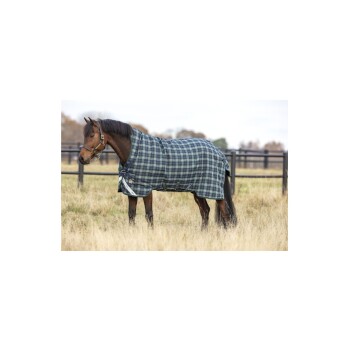 Wug Turnout Med VL von Rhino- mit dem originalen High-Neck Wug Design im anliegenden Schnitt, um Druckstellen am Widerrist zu vermeiden. Als Verschluss dient ein V-Vorderverschluss-System für mehr Bewegungsfreiheit beim Grasen. Die einzigartige Barrieren-Technologie mit Außenmaterial aus 1000D Polypropylen schützt die wasserdichte und atmungsaktive Schicht im Inneren der Decke. Mit Beinausschnitten, Reflektorstreifen, Kreuzgurten und einem glanzgebenden Innenfutter aus Polyester ist die Decke ebenfalls ausgestattet.