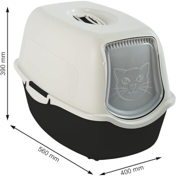 Komfortable Katzentoilette mit cleveren Features! Diese Katzentoilette von Rotho bietet deiner Katze ein komfortables und hygienisches Örtchen für ihr Geschäft. Mit großzügiger Schale, cleverer Schwingtür und integriertem Aktivkohlefilter bleiben keine Wünsche offen! Vorteile im Überblick: Großzügige Schale: Bietet viel Platz und ist leicht zu reinigen. Frische Luft: Schwingtür und Aktivkohlefilter neutralisieren Gerüche effektiv. Ungestörte Privatsphäre: Die Schwingtür ermöglicht ungestörtes Geschäft. Umweltbewusst: Hergestellt aus recyceltem Kunststoff. Praktisch: Mit integriertem Griff für einfachen Transport. Inklusive Schaufelhalterung: Für eine hygienische Reinigung. Details: Max. Größe der Katze: Für Katzen bis ca. 40-42 cm Körperlänge gemessen von der Nasenspitze bis zum Schwanzansatz. Größe (LxBxH): 55.5 x 40 x 38.7 cm Gewicht: 1,3 kg Farbe: Schwarz/Weiß Material: recycelter Kunststoff (PP) Schweizer Qualität von Rotho seit 1889!