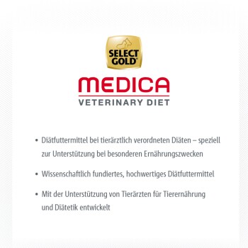 SELECT GOLD Medica Reduktion wurde speziell für Hunde mit Gewichtsproblemen entwickelt. *Schmeckt nicht? Mit unserer Akzeptanzgarantie bekommst du dein Geld zurück und suchst dir einfach ein anderes Futter aus.